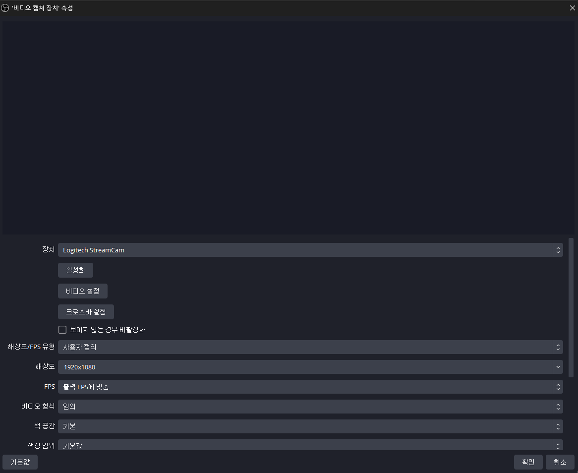 비디오캡쳐장치 설정화면에서 장치를 캠으로 설정한다