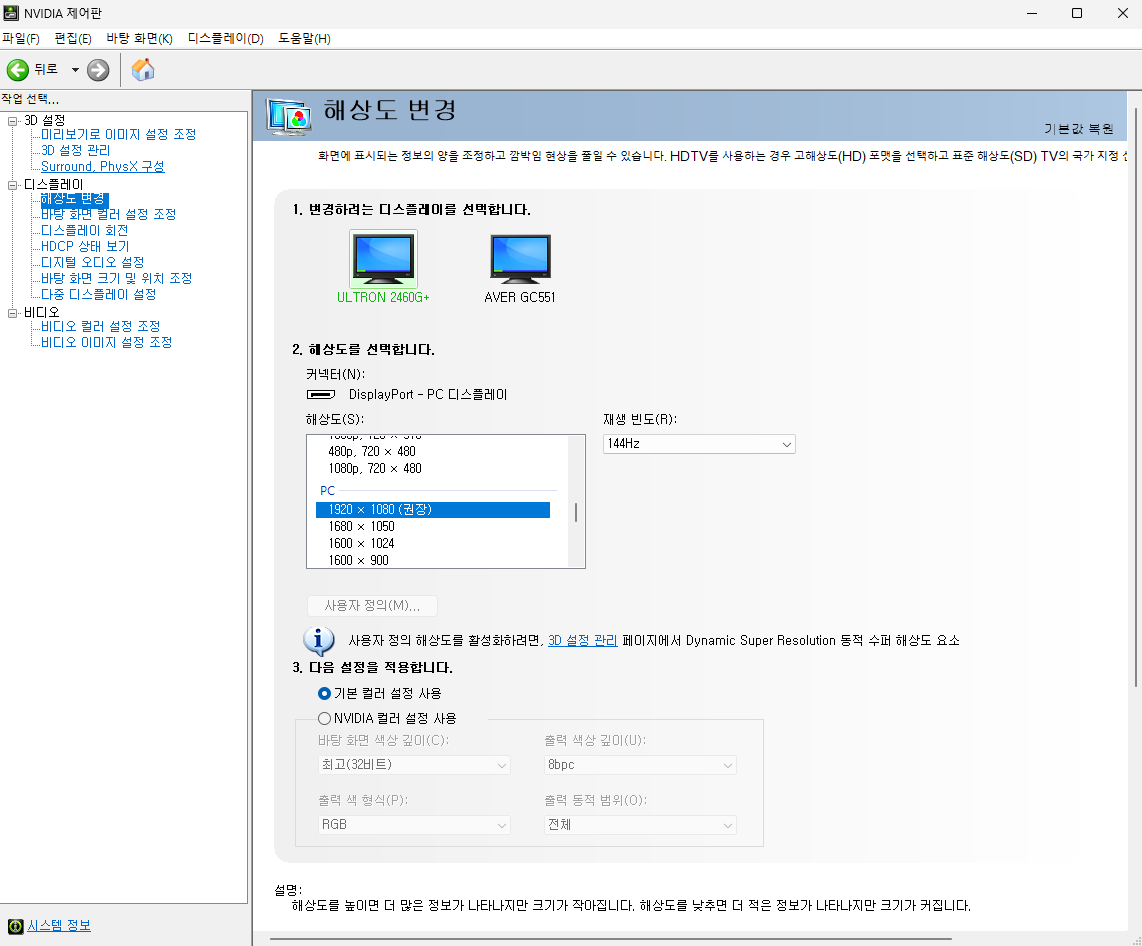 엔비디아 제어판에서 설정방법