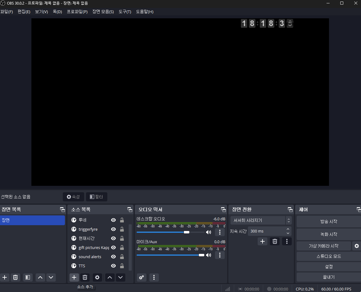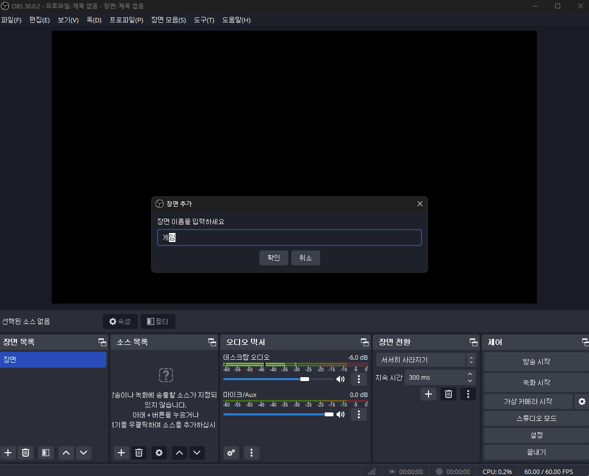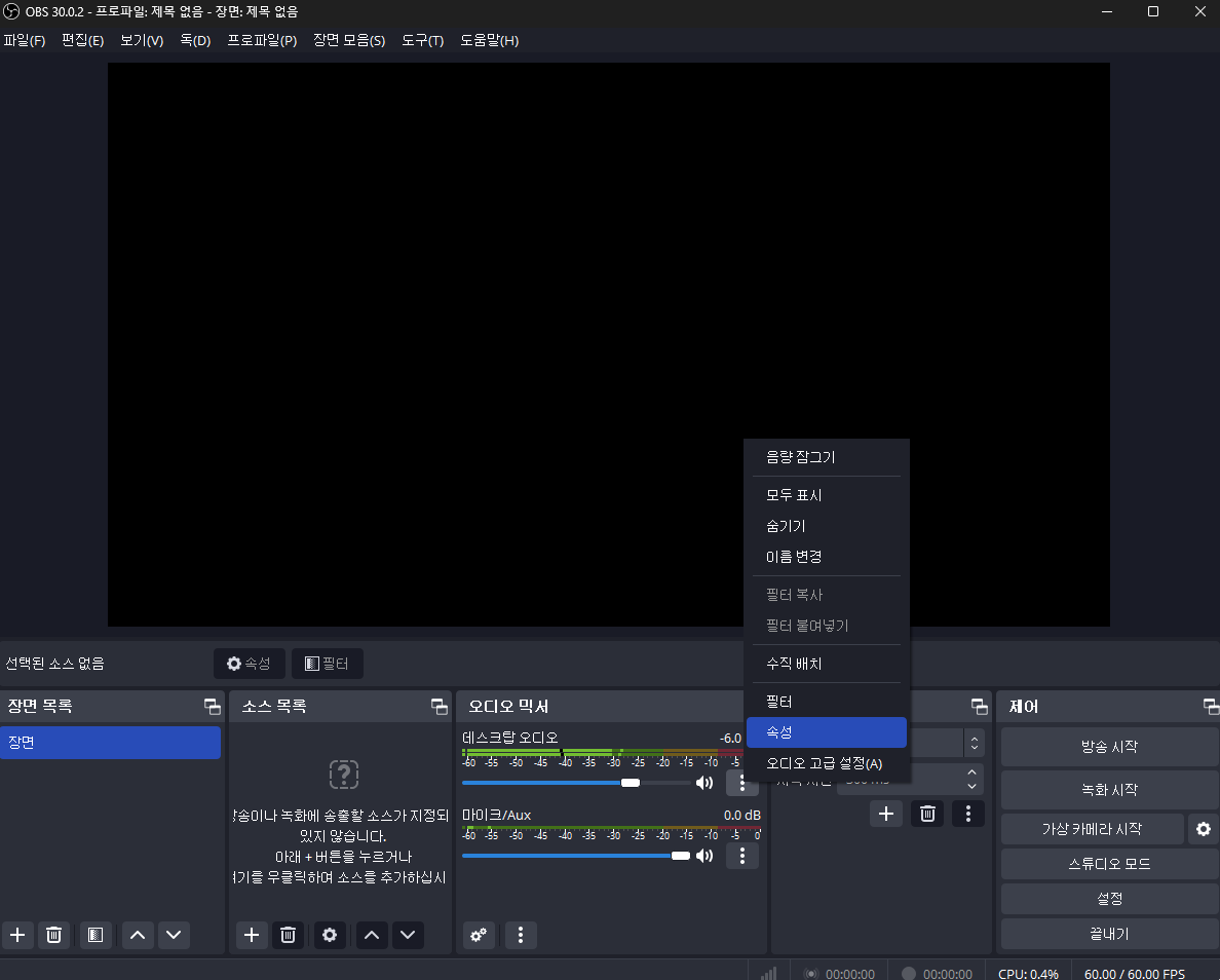먼저 OBS 기본설정을 해준다. OBS 기본설정 링크