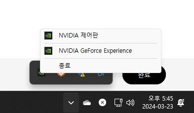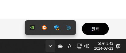 먼저 작업표시줄 우측 위로 향한 화살표 클릭 후 엔비디아 제어판으로 들어간다.