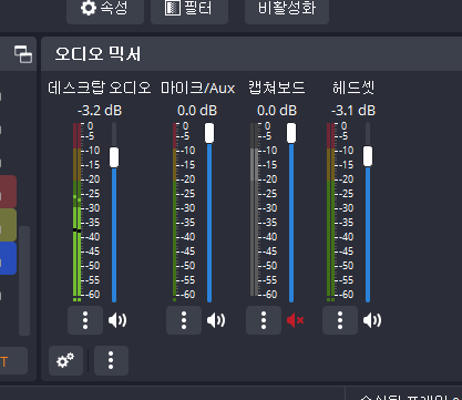 그리고 오디오 믹서에서 캡쳐보드 음소거한다