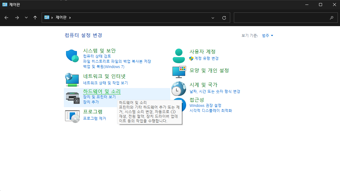 처음엔 그냥 기본 장치로 되어 있는데 인식한다면 손 안대도 될 것 같다.