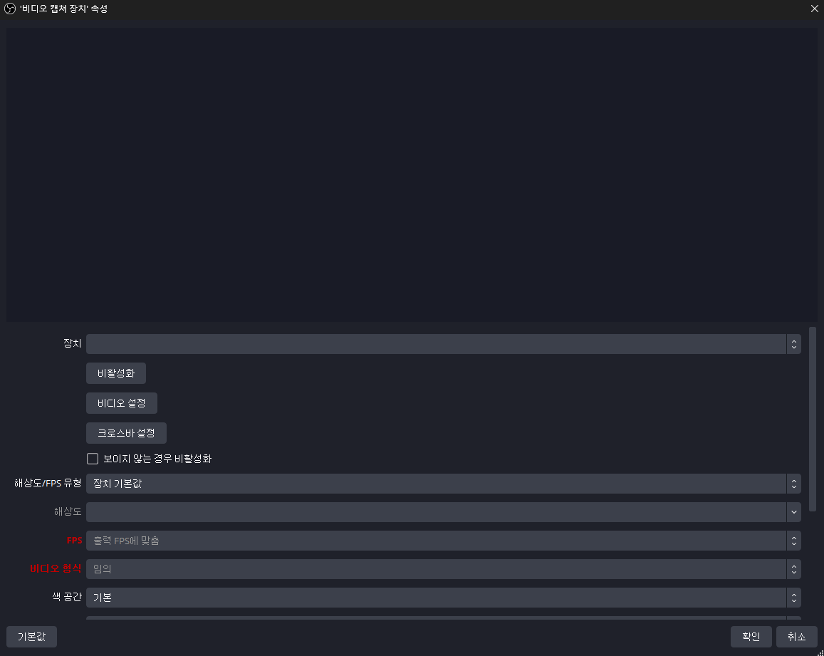그리고 비디오 캡쳐장치 속성에서 장치를 캡쳐보드로 설정