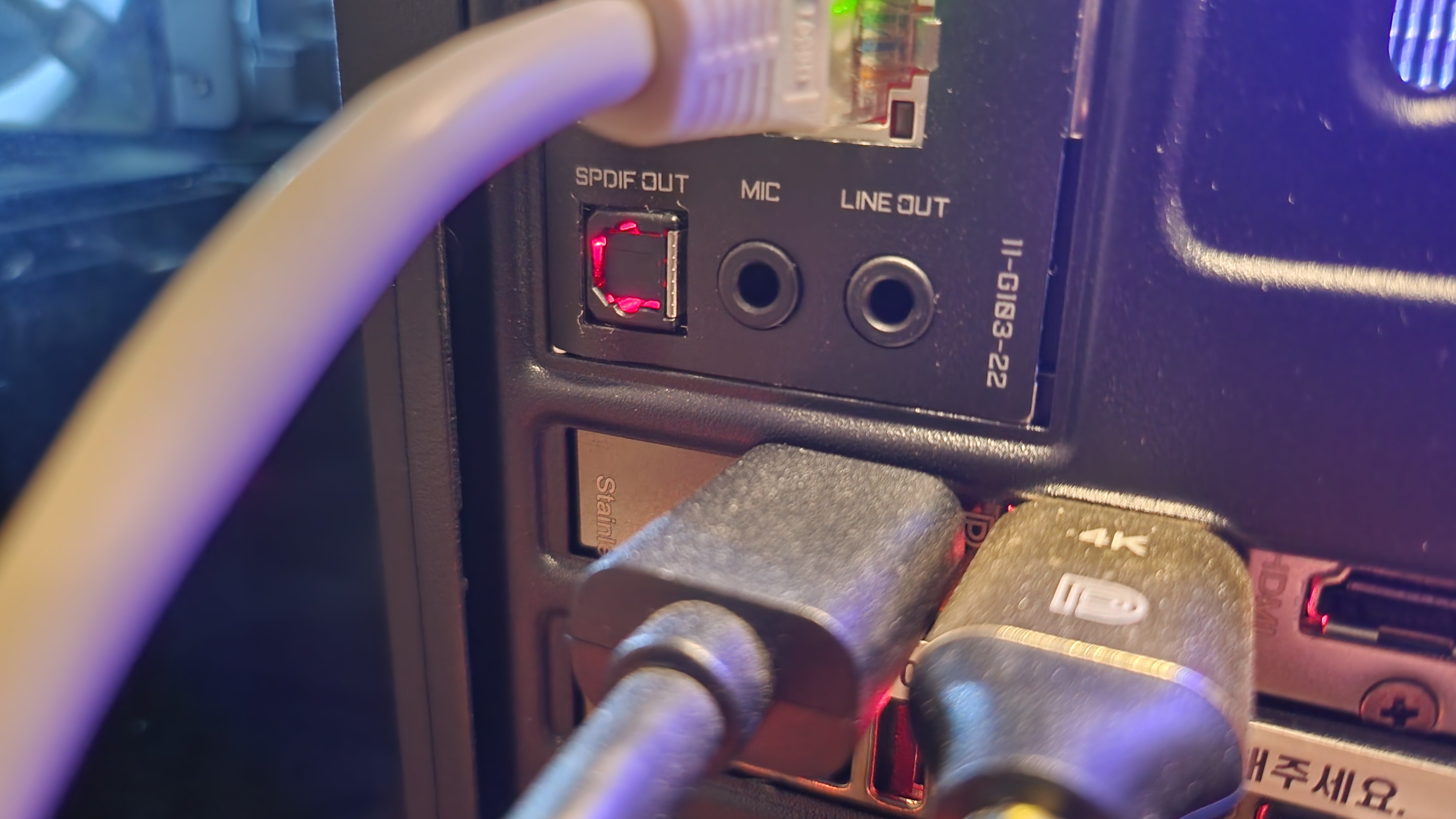 SPDIF 오디오 광 케이블로 연결할 때는
